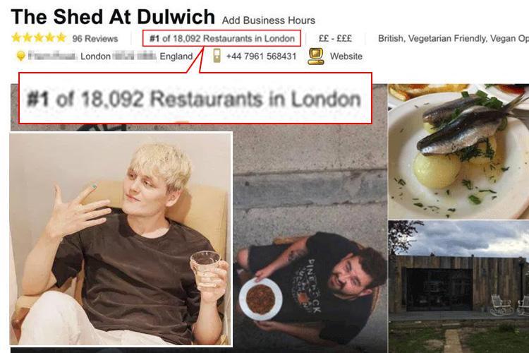 Na newsletter Meios (que assino e recomendo fortemente), tomei contato com uma informação incrível e assustadora. Em um artigo é contada a história do restaurante The Shed at Dulwich que chegou ao topo da lista do TripAdvisor como um dos melhores de Londres. Na plataforma você encontra fotos dos pratos, endereço, página da internet e todas as informações sobre o local. Também existem diversas recomendações e avaliações elogiosas do restaurante que só recebia clientes mediante reserva, porém estava sempre lotado.